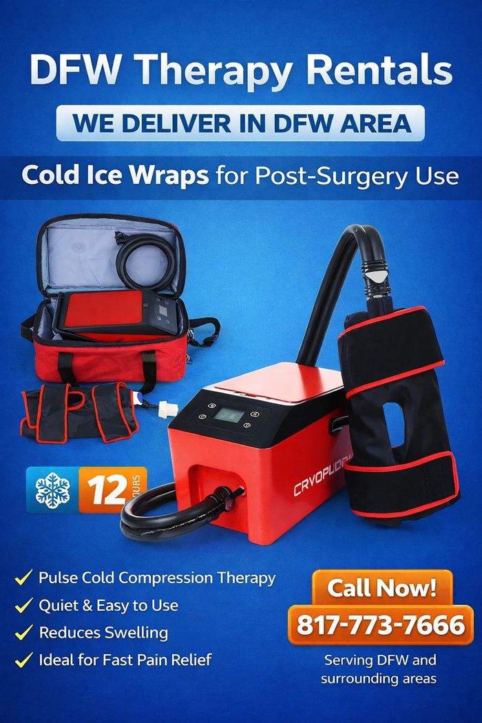 Experience premium cold therapy delivered across Dallas–Fort Worth. Our medical-grade cold therapy equipment is designed to help you recover faster, whether you're healing from shoulder surgery recovery, managing pain, or supporting athletic recovery. We are here to assist you every step of the way.